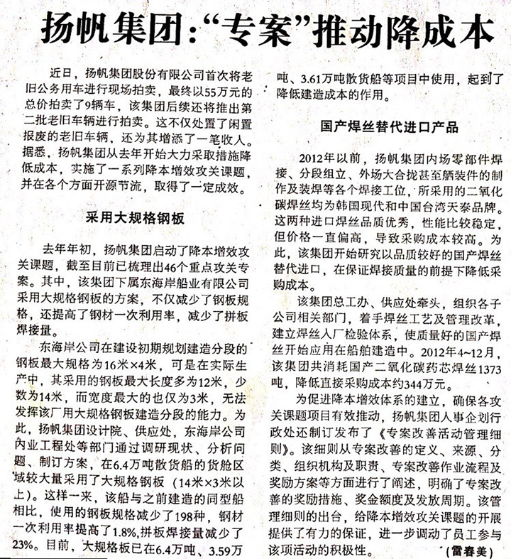 《中國船舶報》第39期:揚帆集團:“專案”推動